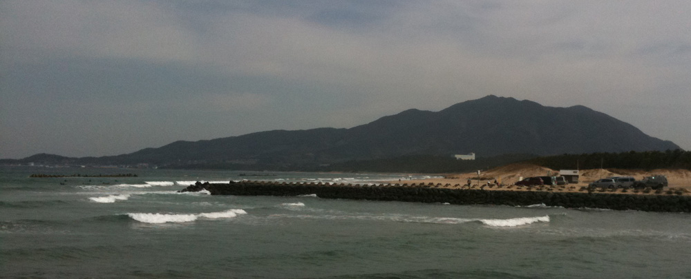 鐘崎の地勢は、「山が海にせまり、沿岸にそって居している」という史書の記述に合致することにも注目です。鐘崎は湾曲の頂点に在る鐘ノ岬の南側に広がる岬村です。その背後には標高471mの湯川山が大きく聳え立ち、山頂からは三里松原の浜を眺めることができます。鐘ノ岬と湯島山は、天候に恵まれれば壱岐からも見ることができるため、玄界灘を航海する際の一大指標として重要な役割を果たしました。そして奈良、平安時代に至っては玄界灘の寄港地として、その山裾の広がる岬の浜は、「古代京泊の港」とまで呼ばれるようになったのです。