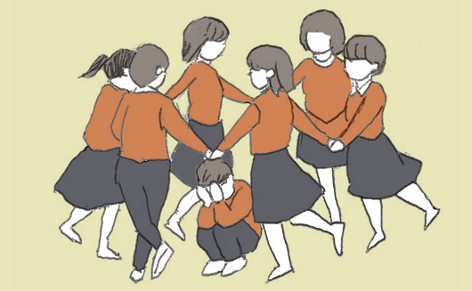「かごめかごめ」遊戯のもうひとつの大切なポイントは、囲まれている鬼の姿です。目隠しされて目が見えなくなってしまう鬼とは、囲まれて守られている中心的な存在が、いつの間にか人の目から隠されてしまうことを象徴しているとも考えられます。鬼は神仏に関わる存在ですから、鬼が目隠しされる姿とは、神格化された大切なものが隠されてしまうという、一種の神隠しのような状態を表現していたのでしょうか。「カゴメ」はヘブライ語で「何を囲むのか」という意味であるという前提で考えると、この目隠しの遊びの背景には、何か大切なものが囲まれて隠されるという状況が考えられていたのかもしれません。