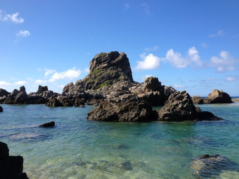 伊平屋島 クマヤ洞窟早速、日峰山を通るレイラインを検証してみましょう。前述したとおり、古代、イスラエルより渡来した民は、大陸から八重山諸島、沖縄を経由して、南西諸島を北上し、日本列島に移住してきました。沖縄では長期間、滞在したことから地域周辺には集落の形成が進み、高天原とも呼ばれるようになりました。その沖縄本島から北西方向に32㎞ほど離れた伊平屋島にはクマヤ洞窟があり、古代から聖地化されていたようです。
