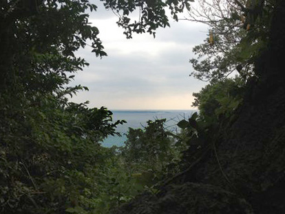 その後、黒潮の流れに乗って一気に進むと四国の高知沿岸が目に入り、室戸岬の東岸から更に北上を続けると、遠くに淡路島が見えてきます。琉球地方から天下り、船で長旅をしてきた先陣隊の一行は、巨大な淡路島とその向こうに立ちはだかる瀬戸内の沿岸を見据え、「東の島々」の最終地点にまで辿り着いたことを知りました。大阪湾を中心とする広大な陸地に突き当たり、それ以上、北方に向けて航海出来ないことが目視で確認できたからです。そして淡路島から列島の調査を開始するにあたり、まず、周辺の島々の位置付けを確認する必要性が生じ、そのために調査団の一行が上陸した拠点がオノゴロ島です。見晴らしの良い島の頂上からは、これまでの船旅の軌跡や淡路島周辺の島々の位置付けを確認することができたことでしょう。その基点となったオノゴロ島は、地理的にも重要な位置付けを占めていました。