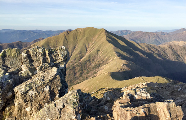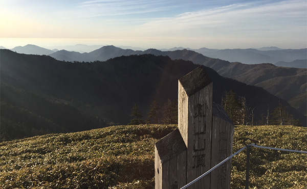 大台ヶ原から熊野灘を望むその大台ヶ原でも、秘境を極める場所として知られるのが、日出ヶ丘から東南東へ5㎞弱離れた標高1109mの奥坊主です。すぐそばには口坊主と呼ばれる岩山もあり、近くの断崖絶壁を滝が流れています。奥坊主の山頂からは景色を見ることができませんが、すぐそばの展望スポットからは、遠くに熊野灘を見渡すことができます。なぜ、大台ヶ原の秘境が奥坊主と命名されたかは定かではありません。江戸時代、将軍や大名の茶室を管理し、接待を務めたのが奥坊主であることから、もしかして、その秘境の地を茶室と捉え、そこで天の神を崇め、接待する思いで神に仕えたことから、奥坊主という名がつけられたのかもしれません。