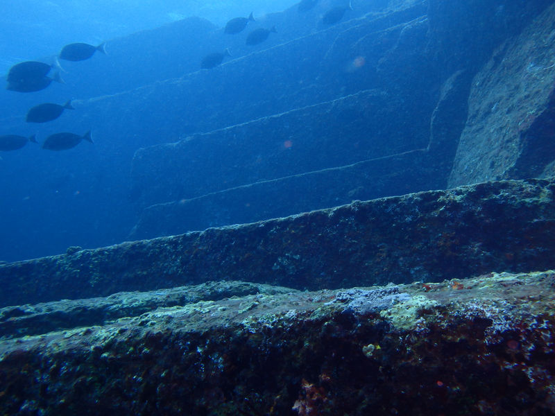与那国島 海底遺跡2014年3月、日本の最南端に近い与那国島をダイビングして海底遺跡を探索しました。そこで潜水チームと一緒に海中で目の当たりにしたのは、信じられないほど整然と整えられた、段々畑の跡としか考えられない光景でした。それらがすべて自然の産物だ、という説もあるようですが、どう見ても人工の遺物にしか見えません。そこには階段があり、通路があり、広場があるだけでなく、三角形の星の形をしたような大きな石の像も彫られているように見えます。そして後日、海中写真に見入っていると、そこに映しだされた光景と、マチュピチュの姿に類似点が多くあるように思えてきたのです。百聞は一見に如かず。自分の目で確かめることにしました。