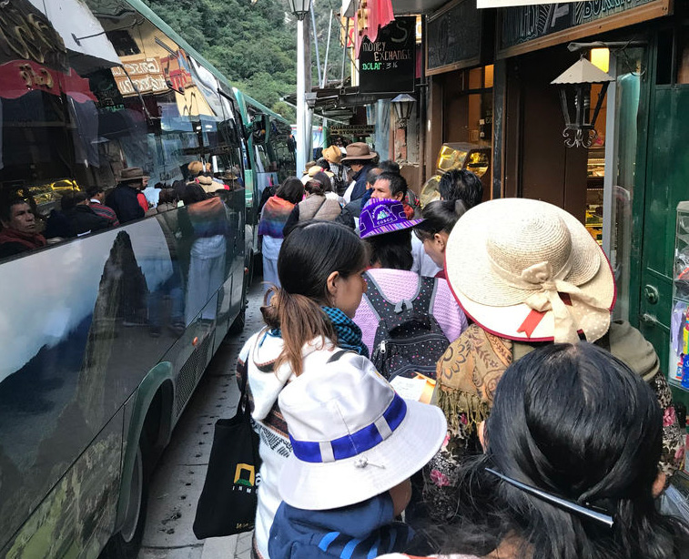 マチュピチュの街から遺跡へ向かうバス調べてみて特にわかりづらかったのは、クスコからマチュピチュまでの移動手段です。電車を使うにも複数の駅があり、どこまで車を使うのか、また、インカトレイルを歩いて行く方法もあるのかと、わからないことだらけです。また、マチュピチュに入るチケットは事前に購入しておかないと、場合によっては人が一杯で入れないこともあるようです。同様に電車も事前予約が必須というネット情報もあり、先行して旅程を組む必要に迫られました。また、ツアーガイドなしではマチュピチュ観光は難しいという書き込みも散見されますが、生まれてからこの方、ガイドを使って旅行したことなど一度もないのです。