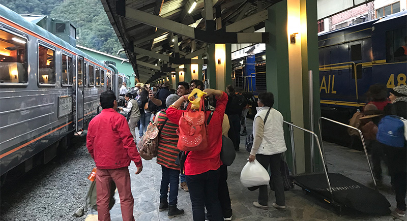 マチュピチュへ向かう電車乗り場電車の予約は基本、インターネットから行い、チケットを事前購入します。マチュピチュ行きにはInca Rail(インカ鉄道)とPeru Rail(ペルー鉄道)の2社があり、一長一短のサービスを提供しています。そしてどちらが良いのかわからないまま、行きはインカ鉄道のExecutive Class、帰りはペルー鉄道の超豪華なBelmond Hihramと呼ばれる列車を予約し、マチュピチュへの旅を締めくくるご褒美としてとっておくことにしました。