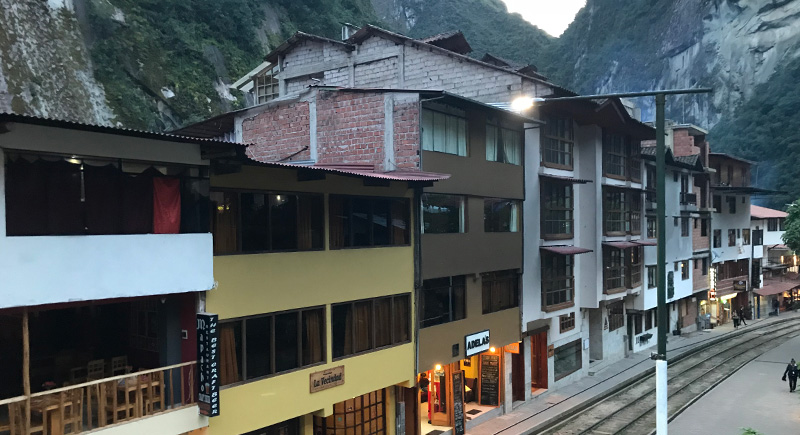 マチュピチュ駅近郊のホテル街そこでまず、マチュピチュのホテルをネットから予約し、定評が高く割安に思えたCasa Del Solホテルに一泊することにしました。実はこの選択肢が功を奏したのです。何故なら、サービス抜群のコンシェルジュが存在し、宿泊とは全く関係ない旅の質問に対しても、親切丁寧に、すぐにメールで返信してくださったからです。ネットで調べてもわかりづらいことを何でも聞くことができたからこそ、ぎりぎりで計画をまとめることができました。