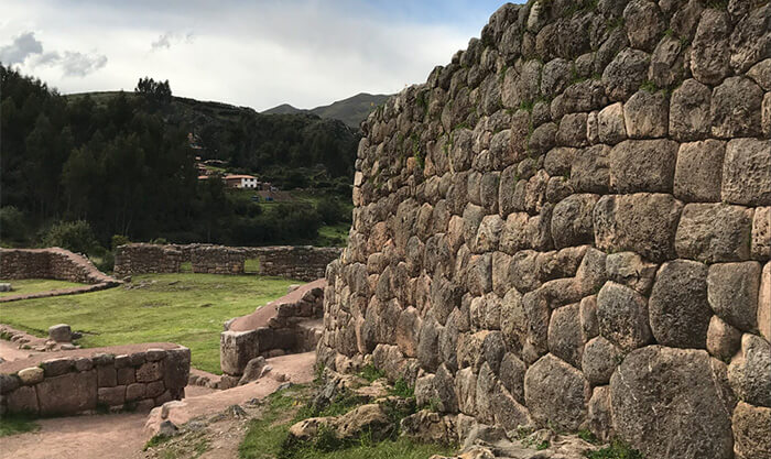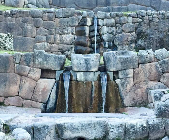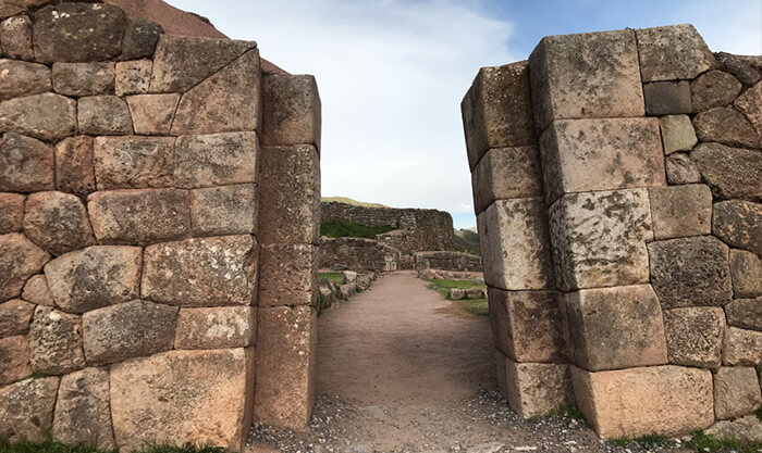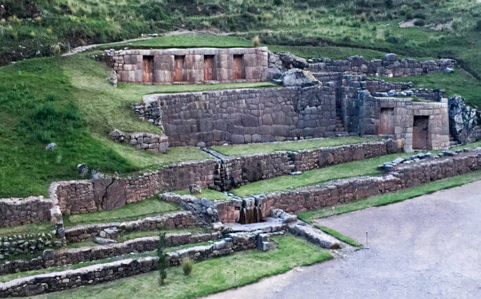 皇帝が使われていた見事な石造りの沐浴場最後にもう一つ、日没までにどうしても見たかった遺跡が、タンボマチャイです。そのゲートに到着した時は、すでに4時半でした。日没まであとわずかな時間しかなく、急いで見学することにしました。インカ帝国の時代、岩から水が豊富に沸き出るタンボマチャイは皇帝の沐浴場であったと考えられています。石が美しく積まれて組み立てられていることから、王妃用と皇帝用の沐浴場が存在するとも言われ、その周囲は見張り台によって守られています。それらの巨石はマチュピチュやサクサイワマンと同様に、きめ細かく組まれています。タンボマチャイの標高は3750mと、クスコよりもかなり高台に位置することから、狼煙台としても使われていた形跡を確認することができます。