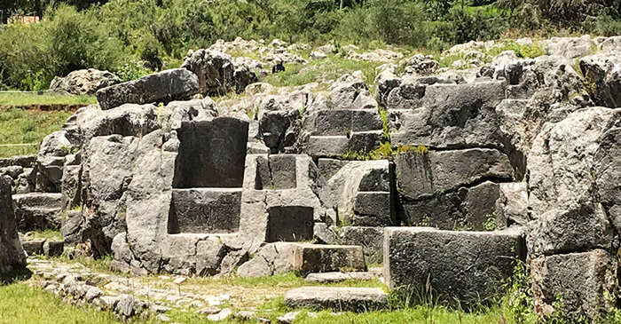 サクサイワマンの施設には、数字の「3」というモチーフが大切に扱われていることにも注目です。巨石からなる石組みの基礎は3段に積み重なり、南北の丘に連なっています。それらの上には当初、3層状の建造物があったと推定されています。これらの遺跡構造は、インカ時代に普及していた天上、地上、地下という3つの世界観が反映されたという説がありますが、定かではありません。また、遺跡内に残された基礎から、そこには3つの巨大な塔が東西に建てられていたと考えられています。「3」のモチーフは、イエスキリストの時代から神学的な構想として三位一体という考え方が広まり、後世まで延べ伝えられたことは周知の事実です。そして日本でも古代から「3」という数字が大事にされ、由緒ある神社で3連の磐座や三つ鳥居が祀られている場所も多々存在し、古事記や日本書紀においても3神の大切さが連呼されています。その考え方は飛鳥時代や奈良時代までも継続し、藤原一族らも「3」という数字を特に大切にして神を祀ったことが知られています。世界各地で「3」が大切にされる中、インカ帝国においてもその信条が何等かのつながりで踏襲されていた可能性があるのではないでしょうか。