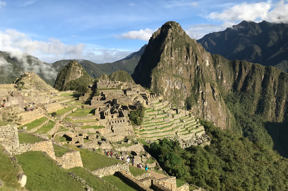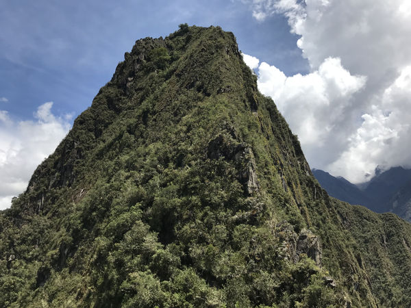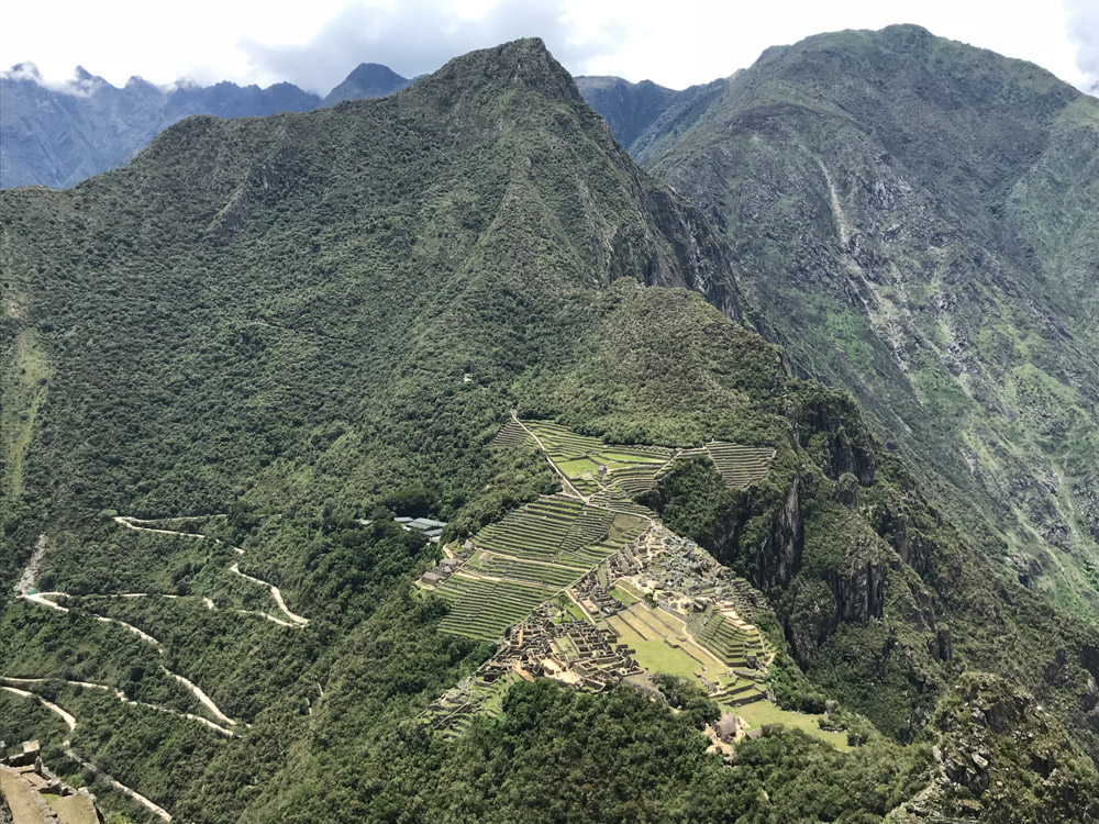 無数の石が積まれた急斜面上の壁段々畑をはじめとし、山の急斜面を開拓して造成されたマチュピチュ遺跡を目の当たりにすると、見ているだけでもうっとりとしてきます。これだけ多くの石を切り崩して積んでいきながら砦を造ったわけですから、相当な労力を要したに違いありません。おそらくワイナピチュの山が、その原石の大半を占めていたのではないでしょうか。今日、目にすることのできるワイナピチュの山の形状を見ていると、まさに人の手が入り、山が切り崩された結果の姿であることを感じないではいられません。