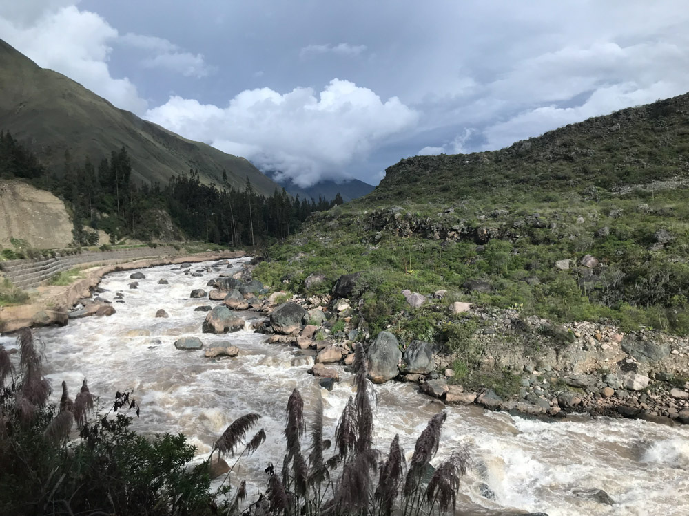 真横に流れる川は汽車と同じ方向に下っていたマチュピチュへの観光客でほぼ満席となった汽車は、オリャンタイタンボ駅から川沿いを走り続けました。そこでふと、目を疑う光景に遭遇しました。クスコからオリャンタイタンボを経由して、マチュピチュの山に向かって汽車で緩い坂を登っていくと勝手に想像していたのですが、まったく逆の光景に出くわしたのです。真横に流れている川は結構な急流であり、しかも汽車が行く方向に向かって流れていたのです。つまり、汽車は山を下り続けていたのです。その時初めて、マチュピチュがクスコやオリャンタイタンボよりも、ずっと標高が低いのに気が付きました。勉強不足でした!