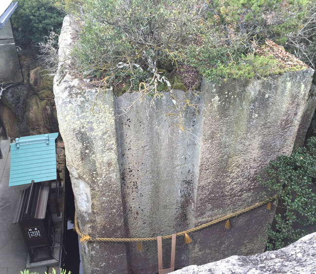 金刀比羅宮奥社 厳魂神社八雲山はスサノオが活躍した国生みの時代まで、そして金毘羅宮は神話に登場する大物主命の時代まで歴史が遡ることから、霊峰石鎚山と共にレイラインの指標としては最も古いものにあたります。また、益田岩船の場所も、伊弉諾神宮と紀伊大島出雲を介して、古くから特定されたと考えられます。その益田岩船の場所を指標として用いて、「石の宝殿」が出雲の八雲山につながる線上に見出されたということは、これら指標のすべてが海に結び付いていることを示唆しているようです。出雲はスサノオが日本海から上陸した古代の聖地です。紀伊大島出雲も海に面した紀伊半島の最南端です。香川の金刀比羅宮は海上交通の神々を祀っています。そして伊弉諾神宮にて葬られた伊耶那岐神は、国生みにあたり、日本の島々を船で巡り渡った人物です。よって、奈良の拠点となる益田岩船に海上交通のモチーフが絡んでいることに何ら不思議はなく、これらレイラインの指標を用いて見いだされた「石の宝殿」も例外ではありません。