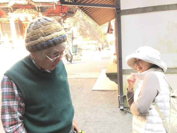 榛名神社の本殿と背後の磐座と、その時、不謹慎な日本人夫婦が目に入りました。榛名山という神聖な山、しかもそのてっぺんにある祈りの場、榛名神社の本殿に、何と、犬を連れて階段を上ってきているのです。長い階段ですから、犬にとっても良い運動とでも考えたのでしょうか。しかしながら、日本の文化を踏みにじることでもあり、神聖な場所に犬を連れて来るとは何事かと憤慨し、一言、注意をしようと、段々と本殿に向かって犬と一緒に歩いてくる夫婦の顔を見ると。。。。