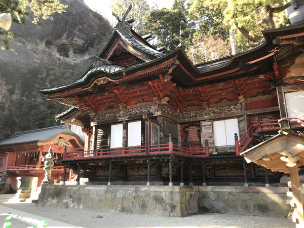 そこから榛名神社へ向けて下り坂を一気に駆け下ります。ところが今度は、その距離が長いのです。まさか疲れ初めているこの時点で3㎞以上、走ることになるとは。。。標高差300mはあり、下り坂ではあるものの、この時点ではさすがに長く感じられます。また、坂道を下るということは、登山やトレッキングにおいて、再び帰り道、上がってこなければならないことを意味します。そんなこと考えると気落ちすることから、ひたすら走り続けていると、10時45分、やっとのことで榛名神社の鳥居が見えてきました。そこから20分ほど境内の階段を上り続けると、榛名神社の本殿があります。すでにトレッキンングを開始してから5時間経っていました。体中、汗びしょのまま、神社の階段を上り、そのてっぺんでお参りをしようと速足で駆け上り、最後の階段を登り切って本殿の前に立った時、既に体は疲れ果てていました。何も食べず、ここまで水1本少々で走り切ったのですから、憧れの本殿の前で一服できることが感謝です!